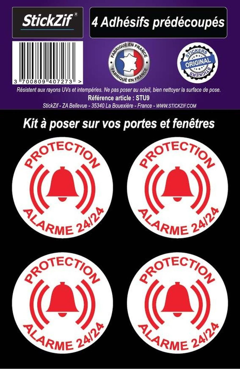 Be the first to review “Adhesifs pre decoupes protection alarme 24/24 x4”