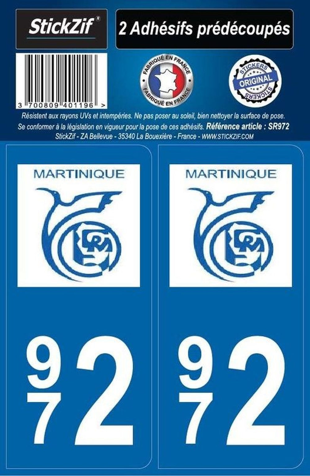 Adhesifs region departement 972 martinique x2. Produit de qualité, adapté aux besoins des professionnels et particuliers. Commande rapide et sécurisée avec livraison partout au Mali : Bamako, Sikasso, Ségou, Kayes, Mopti, Koulikoro, Tombouctou, Gao et Kidal.