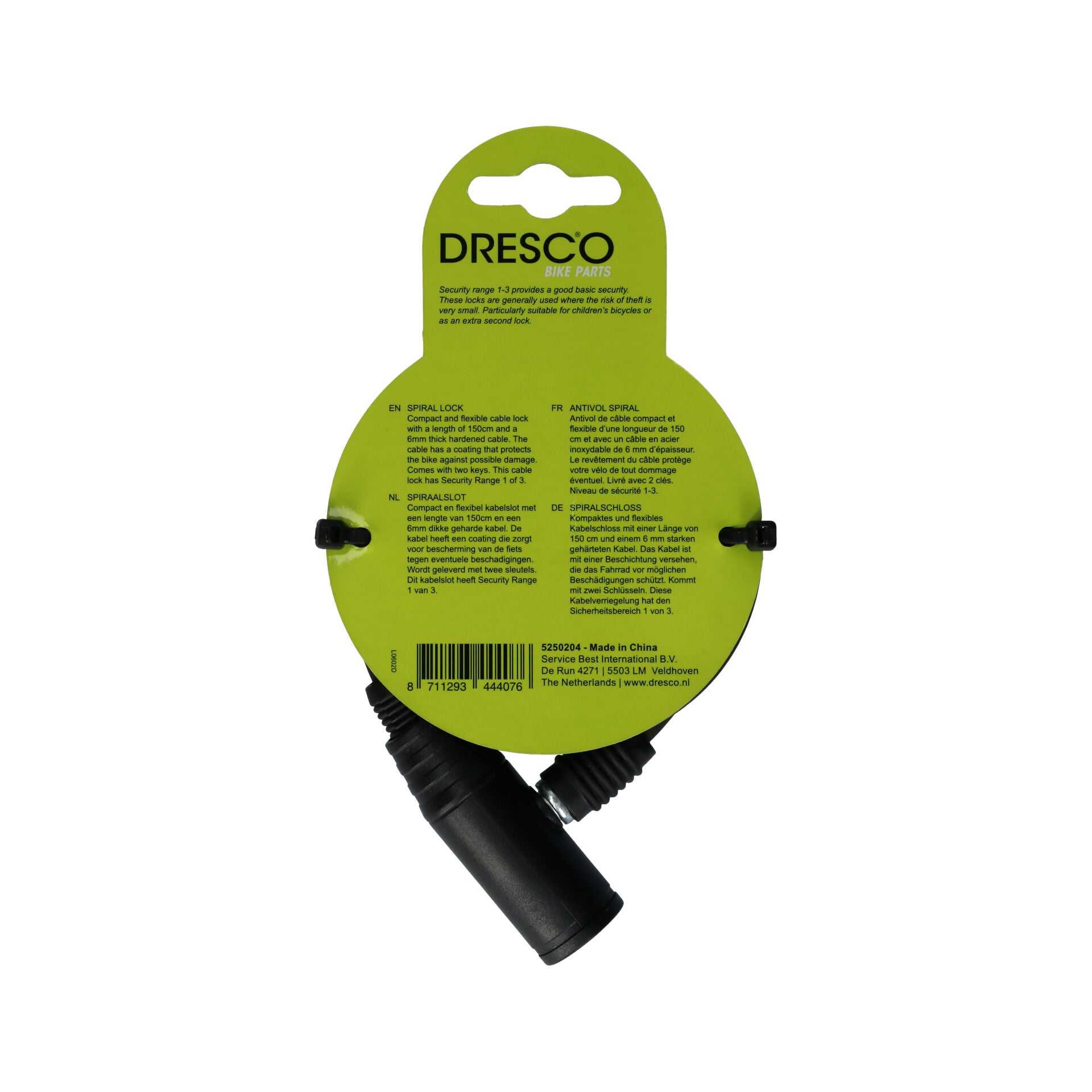 Antivol cable 150cm diam 6mm 2 cles dresco