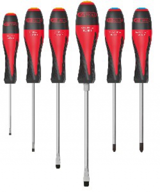 BOÎTE DE 6 TOURNEVIS FENTE ULTIMATE : 1X(3,5X75) – 1X(4,0X100) – 1X(5,5X125) – 1X(6,5X150) PHILIPS : 1X(PH1X75) – 1X(PH2X100)