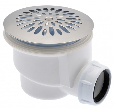 BONDE DOUCHE SIPH. Ø 60 – POLYPRO. – SORTIE HORIZONTALE À COLLER/VISSER Ø 40 – GRILLE INOX