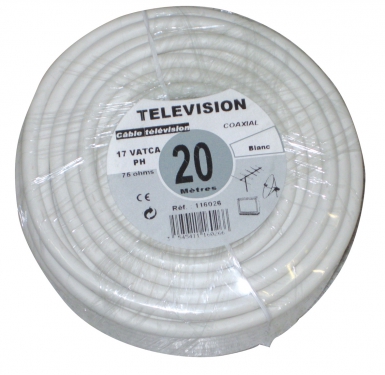 CÂBLE COAXIAL TV 17 VATCA ÂME CU. Ø 1,10 Ø EXT. 4,8 MM 49 KG/KM BLANC – ROULEAU DE 20 M