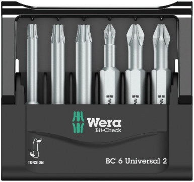 COFFRET BIT-CHECK 6 UNIVERSAL 2 : 6 EMBOUTS TORSION (PH 2 X 50 / PZ 1 X 50 / PZ 2 X 50 / TX 15X50/20X50/25X50)