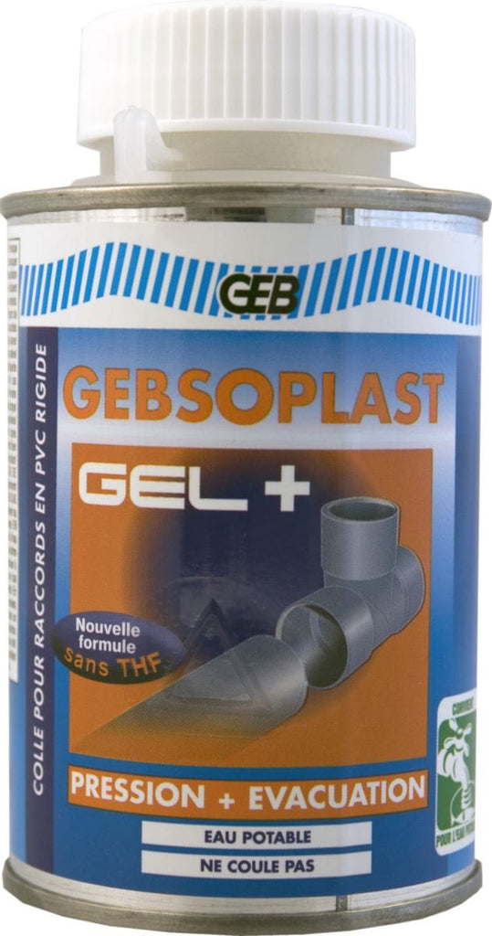 Colle PVC rigide, contact eau potable, GEB GEBSOPLAST GEL PLUS boîte 250ml avec pinceau, Réf.504748. Produit disponible chez Quincaillerie Malienne. Livraison rapide à Bamako et dans toutes les grandes villes du Mali.