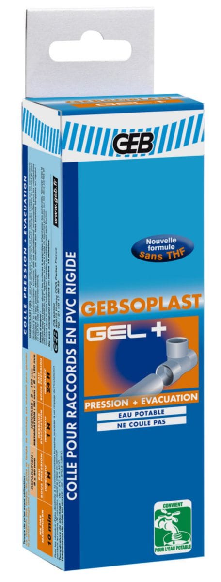 Colle PVC rigide, contact eau potable, GEBSOPLAST GEL PLUS tube 125ml réf 504747 GEB. Produit disponible chez Quincaillerie Malienne. Livraison rapide à Bamako et dans toutes les grandes villes du Mali.