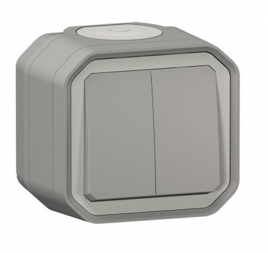 COMMANDE DOUBLE ÉTANCHE POUR RÉALISER 3 FONCTIONS PLEXO IP55 IK08 LIVRÉE COMPLÈTE POUR FIXATION SAILLIE – GRIS
