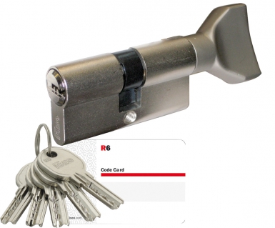 CYLINDRE À BOUTON PROFILÉ EUROPÉEN 6 GOUPILLES ( 30BX40 ) INOX 5 CLÉS RÉVERSIBLES