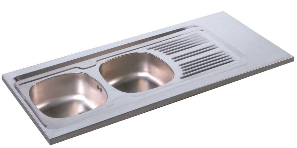 Evier à poser MODERNA en inox 18/10 lisse, 2 cuves, 1 égouttoir L120 cm, Réf.EPBZ120A01