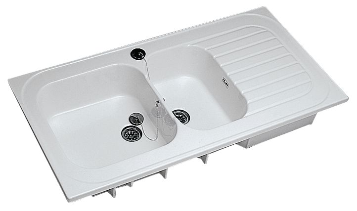 Evier à encastrer GEBERIT Céramique 2 cuves, 1 égouttoir VALLAURIS 2 112×50 cm Blanc, Réf.680000000