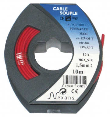 FIL SOUPLE HO7V-K ÂME CUIVRE NU CÂBLÉ 1,5 MM2 ROUGE – ROULEAU 10 M – TARIFÉ À LA PIÈCE