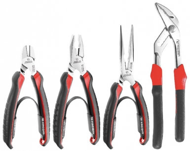 JEU DE 4 PINCES CPE : 1 PINCE MULTIPRISE GRANDE CAPACITÉ, 1 PINCE COUPANTE DIAGONALE, 1 PINCE 1/2 RONDE BEC LONG, 1 PINCE UNIVERSELLE