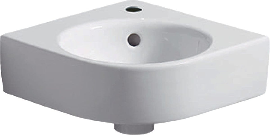 lave-mains d’angle geberit renova compact: b=45cm, t=39.5cm, trou de robinetterie=au centre, trop-plein=visible, blanc Réf. 276132000