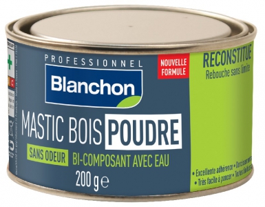 MASTIC BOIS POUDRE – SANS ODEUR – BI-COMPOSANT AVEC EAU – BOIS BLANC – COND. 200 G