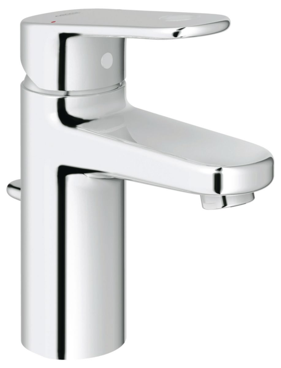 Mitigeur de lavabo GROHE EUROPLUS monocommande 15 x 21, monotrou, limiteur de débit ajustable, mousseur SpeedClean, tirette et garniture de vidage