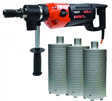 PACK CAROTTEUSE PORTABLE À PERCUSSION FBS16 + 3 COURONNES DIAMANTS KT55 (Ø 68/82/102) LONG 300 MM