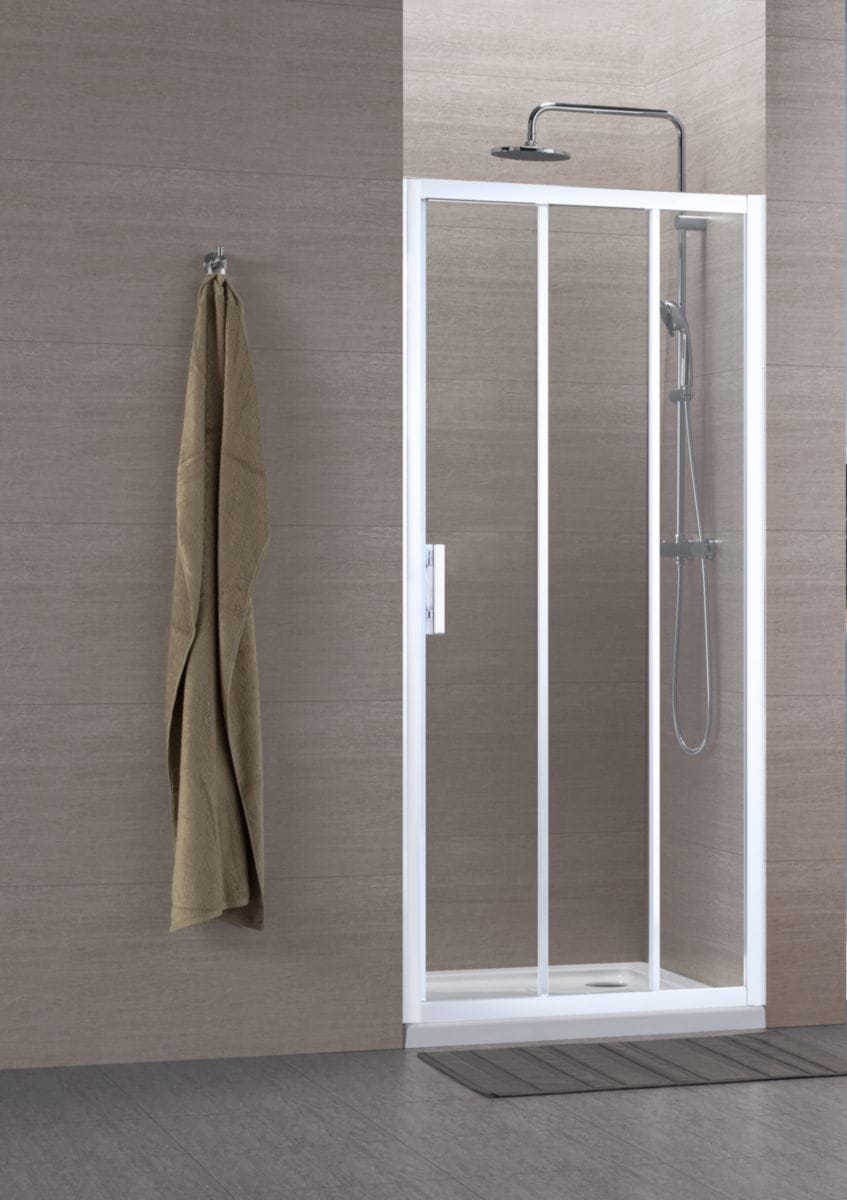 Paroi de douche Concerto accès de face coulissant 3 vantaux L 90 x H 195 cm profilé blanc verre transparent. Produit disponible chez Quincaillerie Malienne. Livraison rapide à Bamako et dans toutes les grandes villes du Mali.