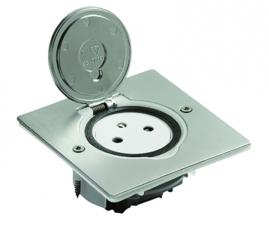 Non classé, 2022Prise de sol double 2p+t surface 16a 250v avec platine rectangulaire – inox brossé – Legrand – Réf. 089768