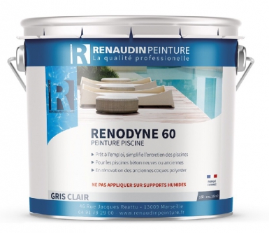 RENODYNE 60 – PEINTURE POUR PISCINE À BASE DE CAOUTCHOUC CHLORÉ. COL. GRIS CLAIR – 15 L