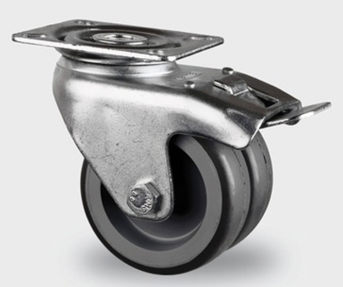 ROUL. PIVOT. + FREIN Ø 50 MM PLATINE 60X60 MM ACIER ZING. BAND. CAOUT. CHARGE 45/90 KG