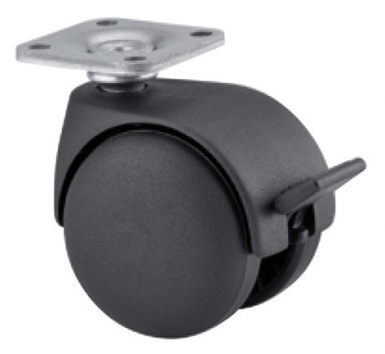 ROULETTE POUR MEUBLE PIVOTANTE À BLOCAGE À PLATINE 38X38 MM Ø 50 MM LXH 55X64 MM