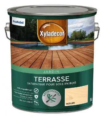 2023SATURATEUR TERRASSES XYLADECOR ANTIDÉRAPANT EN PHASE AQUEUSE – POUR SOLS EXTÉRIEURS EN BOIS TOUTES ESSENCES – RÉSISTANT À L’EAU CHLORÉE, AUX RAYURES ET AUX UV, ANTI-TÂCHES, ANTI-GRAISSES – INCOLORE MAT – 5 L