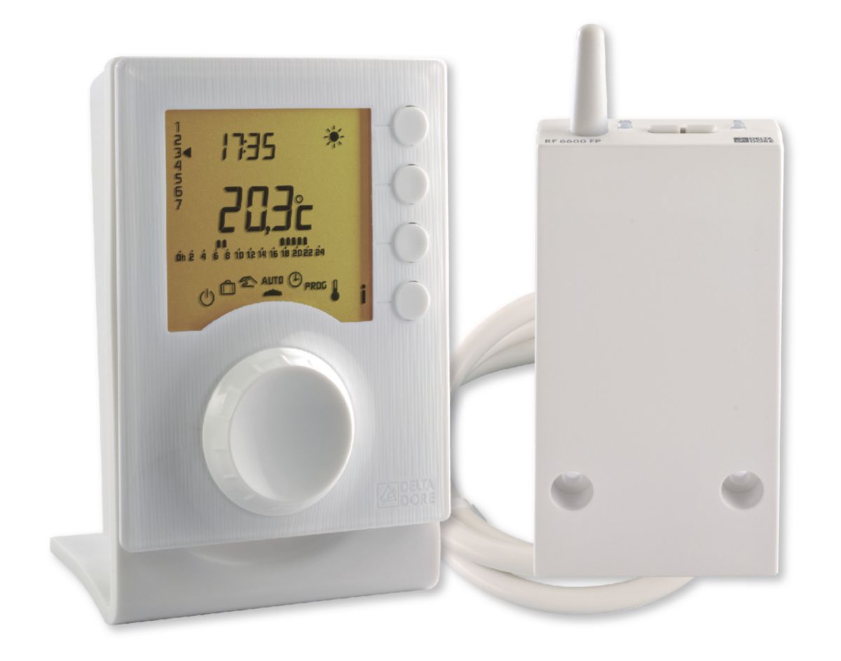 Thermostat programmable DELTA DORE radio j/h pour chauffage en mode confort/réduit, Réf.6053007